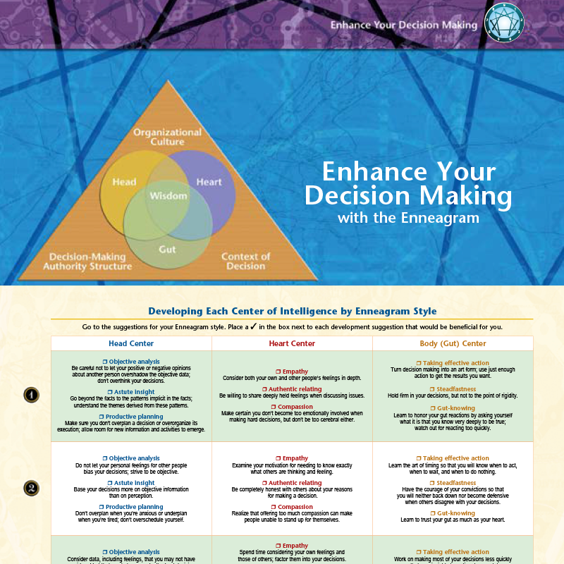 Learn nine different development activities for each Enneagram type that optimize your decision-making capability. 5 x 8.5in folded, 13in when completely unfolded.