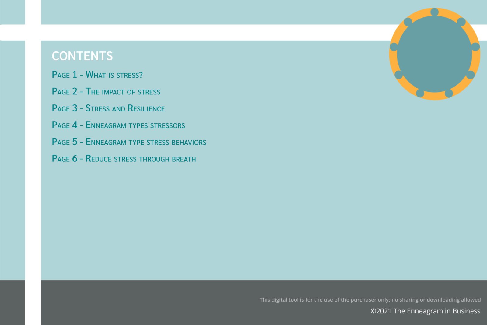 Learn about the Enneagram approach to stress in this 6-page, full-color virtual tool that includes stress, resilience, type-based stressors and behaviors, and breathing practices to reduce stress.